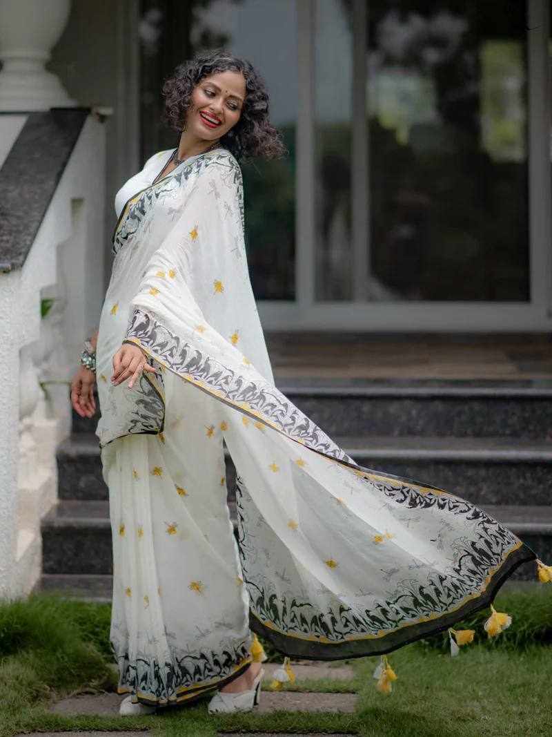 | Name : | KP-W 350 New Party Wear White Colour Saree |
