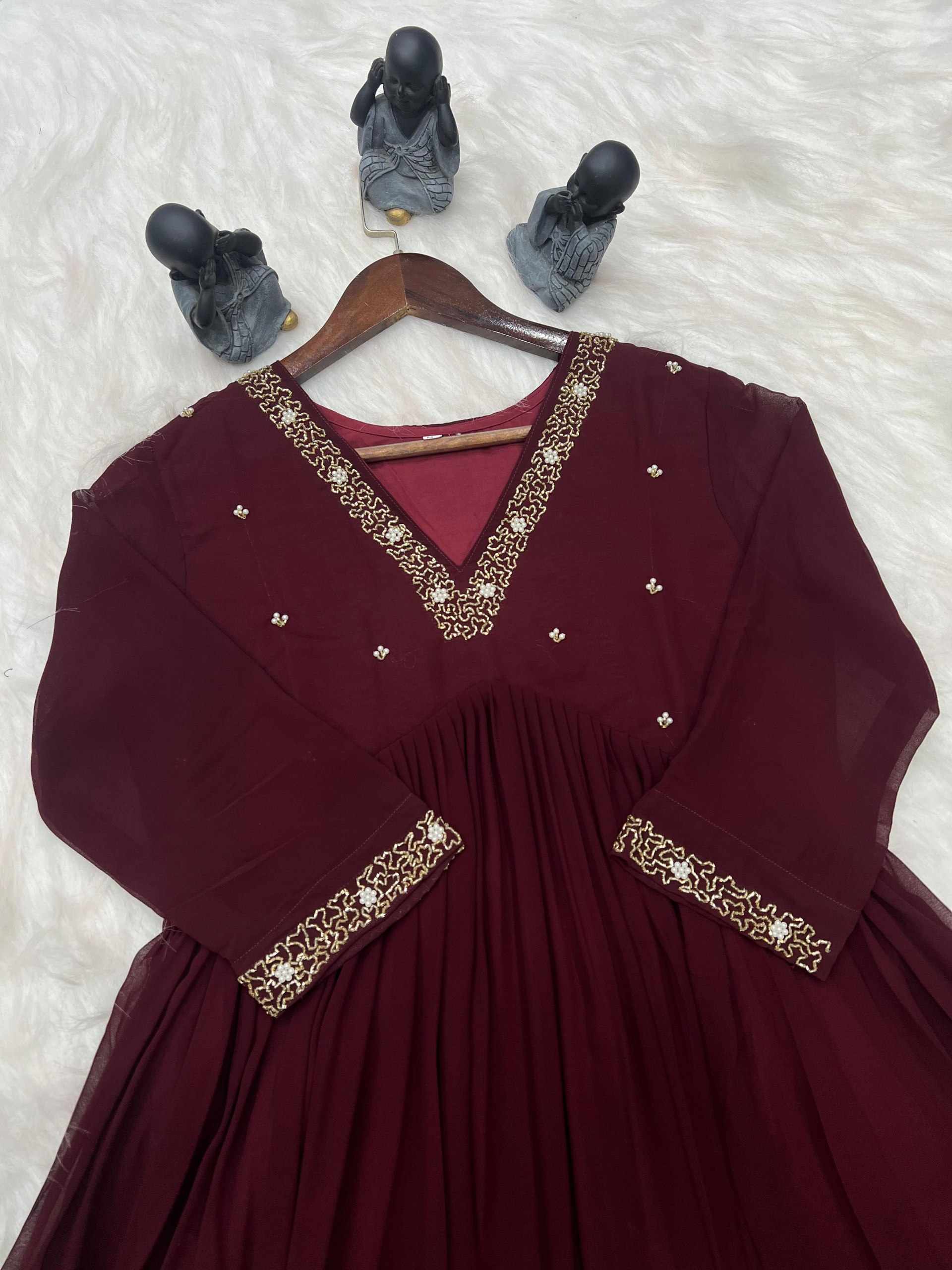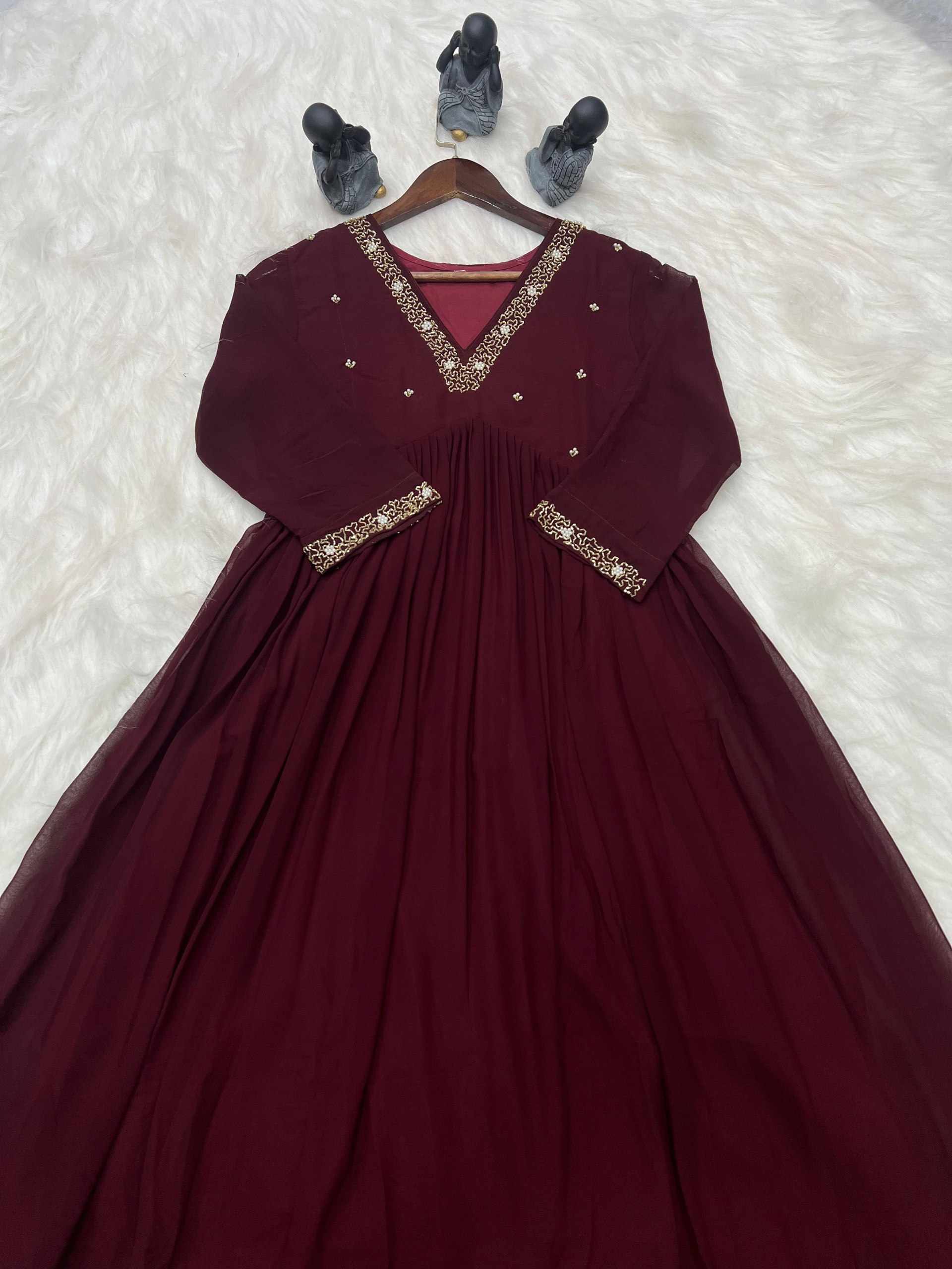 | Name : | WM10 MARRON BLOOMING GEORGETTE HANDWORK KURTI |
